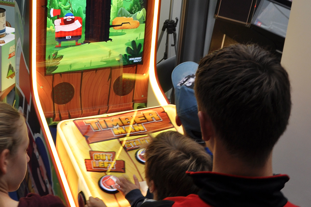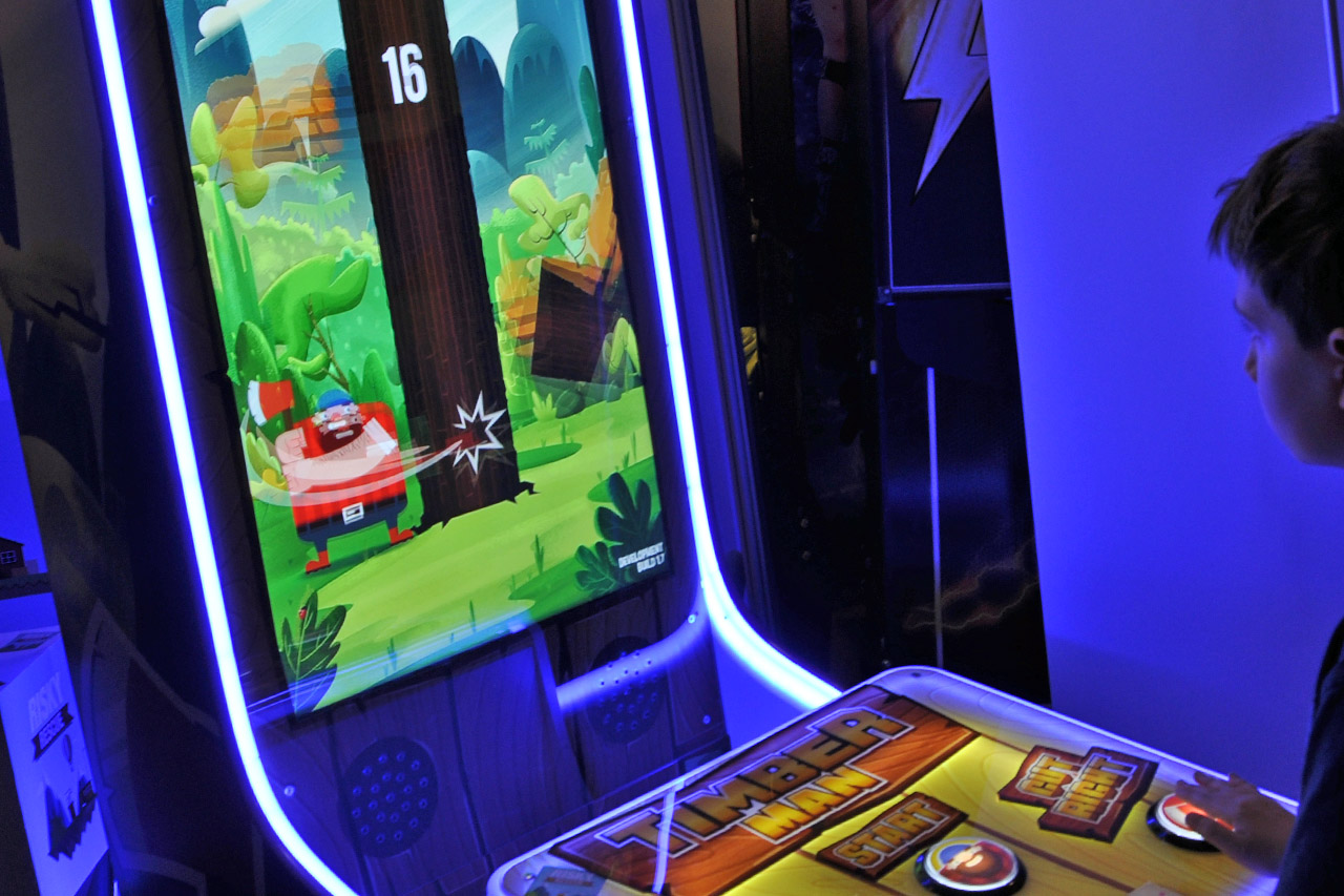 Ponad 30 000 000 graczy na całym świecie nie może się mylić. TIMBERMAN to uzależniająca, wciągająca i hipnotyzująca gra, która przeniesie Ciebie w zupełnie nowy, brodato-kraciasty wymiar zabawy. Przepiękna grafika wyświetlana na 42" ekranie Full HD w pięknej, atrakcyjnie oświetlonej obudowie.